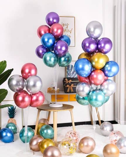 Одним из самых популярных товаров на праздник являются готовые букеты из воздушных шаров. Они представляют собой композиции из нескольких шаров разных размеров и цветов, скрепленных между собой и украшенных лентами и другими декоративными элементами. Такие букеты могут быть использованы для украшения зала, праздничного стола, банкетных столов и других элементов декора.