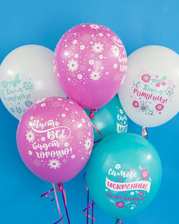 Шары с шелкографической многоцветной печатью и оригинальными дизайнами станут идеальным украшением праздничного торжества и поднимут настроение в любое время года.